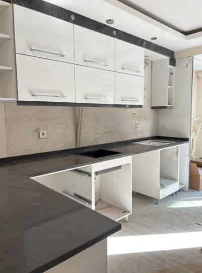 Merkezefendi’deki yeni konut projelerinde kuvars tezgah modelleri modern mutfak dolaplarıyla birlikte oldukça uyumlu bir görünüm oluşturur. Bu yüzeyler farklı renk seçenekleriyle mutfak dekorasyonuna uyum sağlayabilir.